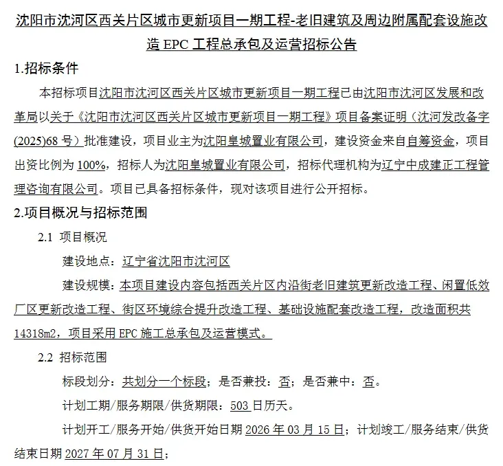 2026年沈河区工作报告里,那几个字分量极重——“推动西关片区城市更新” 。紧接着,沈河区西关片区城市更新项目一期工程的动作就甩到了我们面前。