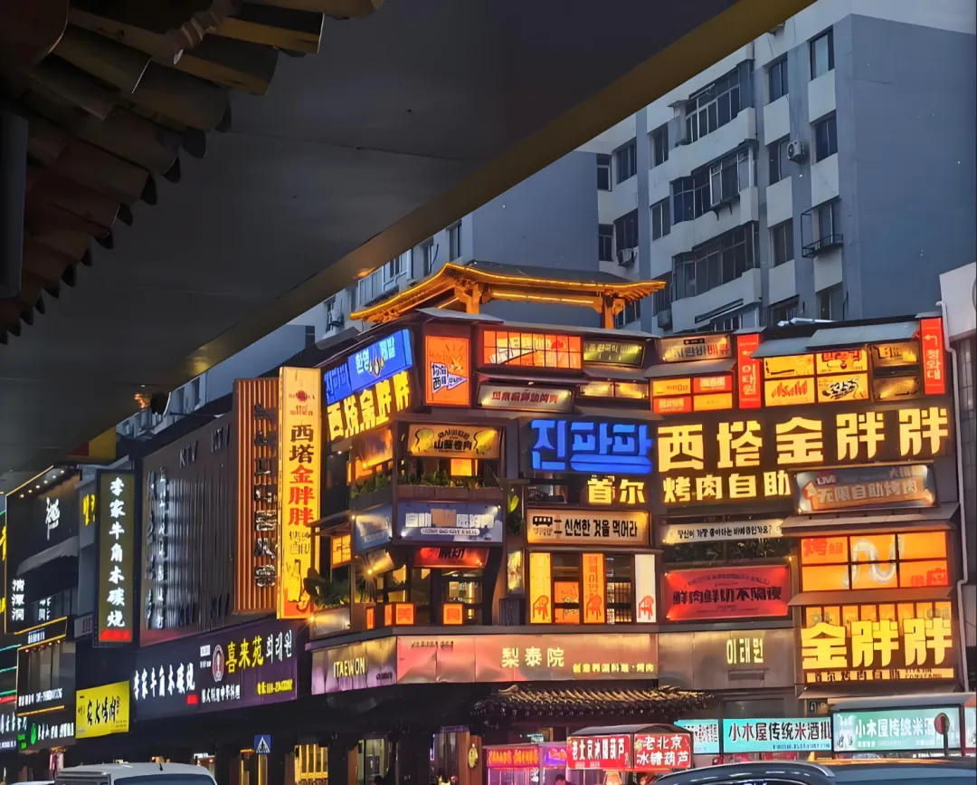 没错,在西塔面前,西关以前确实像个穿着布鞋的老邻居。西塔玩的是国际范儿,是石锅拌饭、烤鳗鱼和深夜的酒吧,是人声鼎沸的“不夜城” 。而西关,守的是传统集市文化,是蒸羊羔肉、回头和那一碗滚烫的羊杂汤,是天一黑就想回家老婆孩子热炕头的静谧 。