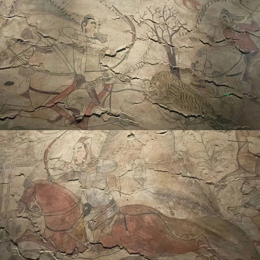 站在徐显秀墓道入口,目光顺着长长的墓道向下、向前,两边是林立的扈从,黑洞洞的门口有高大的侍卫,想象着里面,由北朝画师们营造的绚烂世界。写这些文字的时候,距离现场观看已经过了三周,娄叡的狩猎、徐显秀的仪仗、九原岗的升仙、水泉梁的侍儿,常常会在安静时,一帧一帧,于脑海回映。
