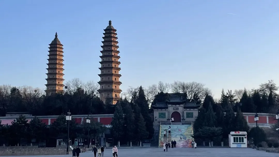 计划中的行程并没有安排双塔,但是在很多纪念冰箱贴上发现双塔俨然是太原的地标代言,于是去打卡。日落时分,小山丘上的古刹,大门虚掩,出来零星几个游客。刹内双塔并峙,护佑古城风水。