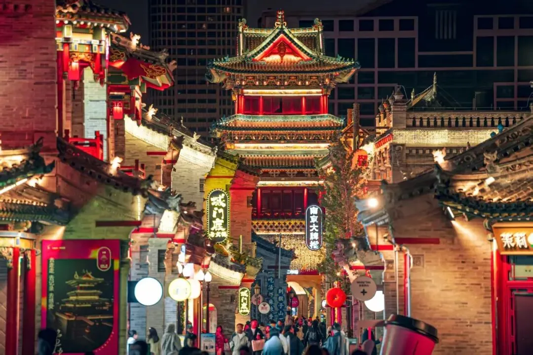 钟楼街不仅保留着文物建筑的历史厚重,还具有现代的艺术气息,年味儿在烟火气中愈发浓郁。 人们在这里打卡、游览、品尝美食,感受浓浓年味儿。 正月初一至正月初四,钟楼街的日均客流量超过13万人次。