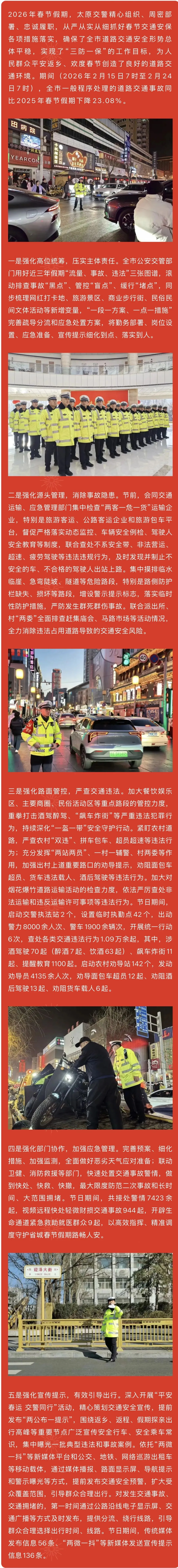 太原交警圆满完成春节假期道路交通安保工作