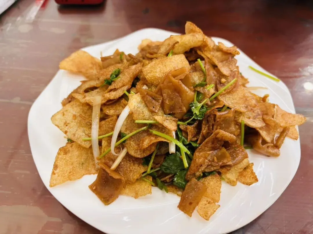 炸鱿鱼,烤鱿鱼,特色凉粉,黄面皮,过油肉,饼子加肉等等,一一品尝美食,满满的幸福感。吃饱喝足,回宾馆休息喽!