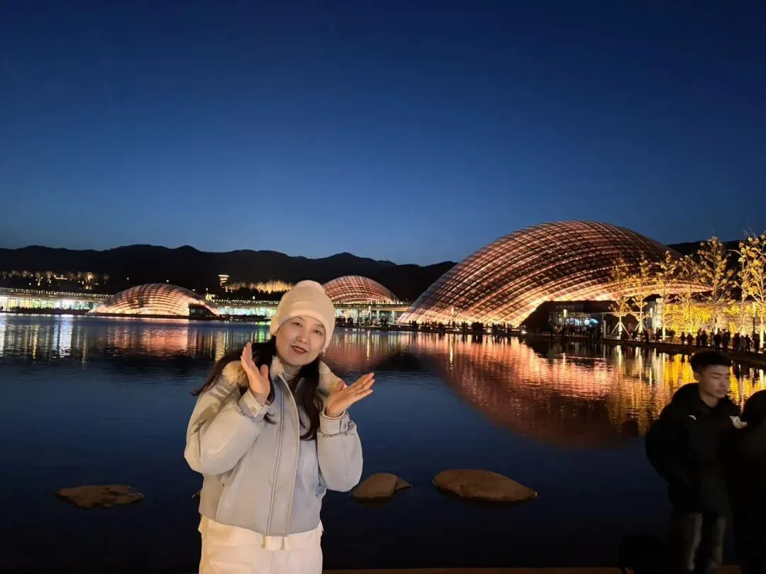 我们到植物园时,已经夜幕降临,三个馆舱已经关闭,我们漫步在植物园内,三个露珠穹顶倒影在波光粼粼的湖面上,随着露珠变幻的闪烁灯光,湖面也变幻出不同的色彩,宛若置身仙境一般。