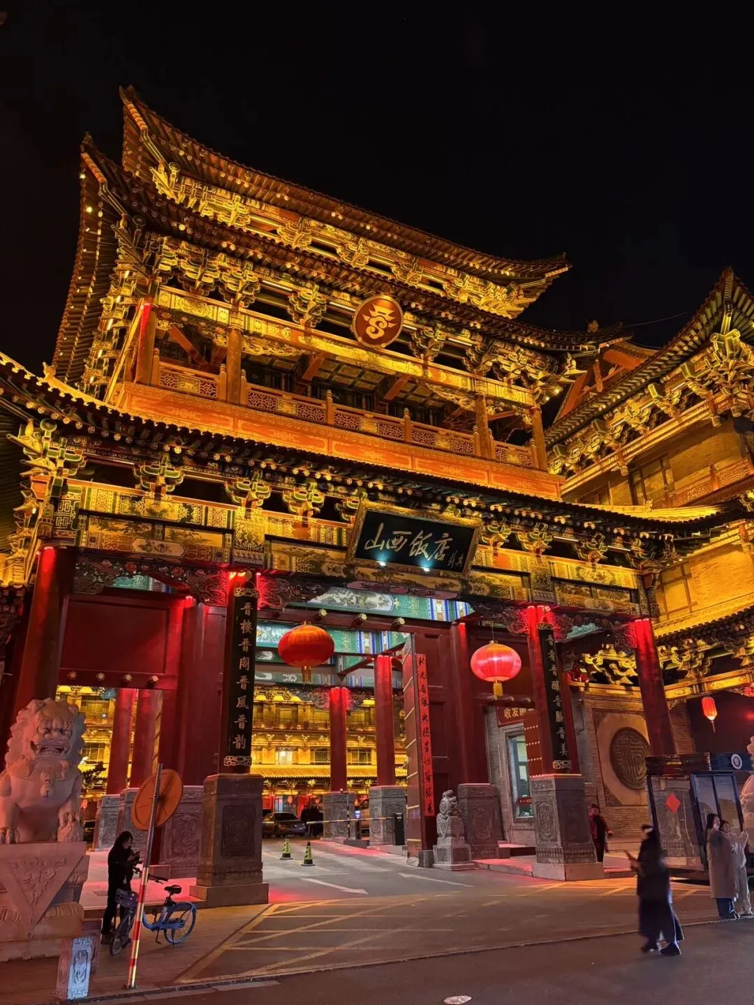 回宾馆途中,还路过山西饭店,金碧辉煌的建筑风格,把山西木建筑的特色发挥得淋漓尽致。