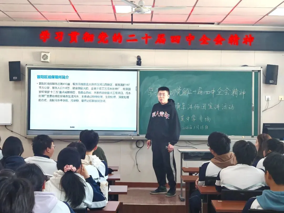 1月中旬,“奋进‘十五五’ 青春挺膺担当”太原市青年讲师团宣讲活动,走进太原市第四十八中学校、太原市第四实验中学、太原市育英中学校与山西现代双语学校南校区。三位青年讲师团成员用直抵人心的讲述,在冬日的校园里点燃了关于理想、奋斗与使命的精神烛火。