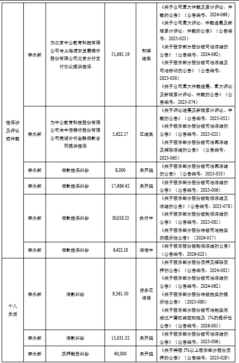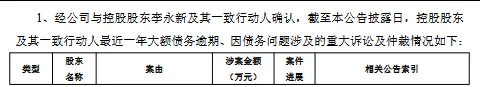 近年来,李永新、鲁忠芳面临大额债务逾期、因债务问题涉及的重大诉讼及仲裁不在少数。据不完全统计,涉案金额超20亿元。