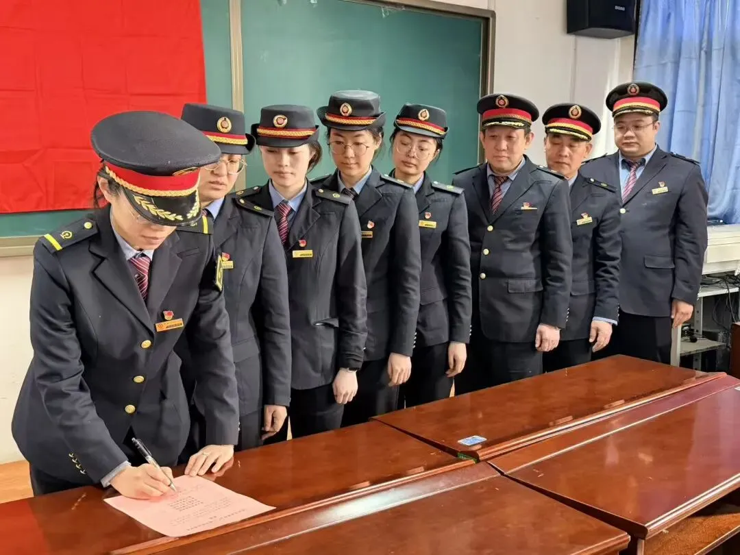 依托党员创岗建区载体,将党员骨干部署在关键车厢、重点岗位,规范设立党员责任岗、包保责任区,组织党员签订《党员承诺书》,构建起“党员带头、自控互控”的责任落实链条,为春运攻坚提供坚实组织保障。