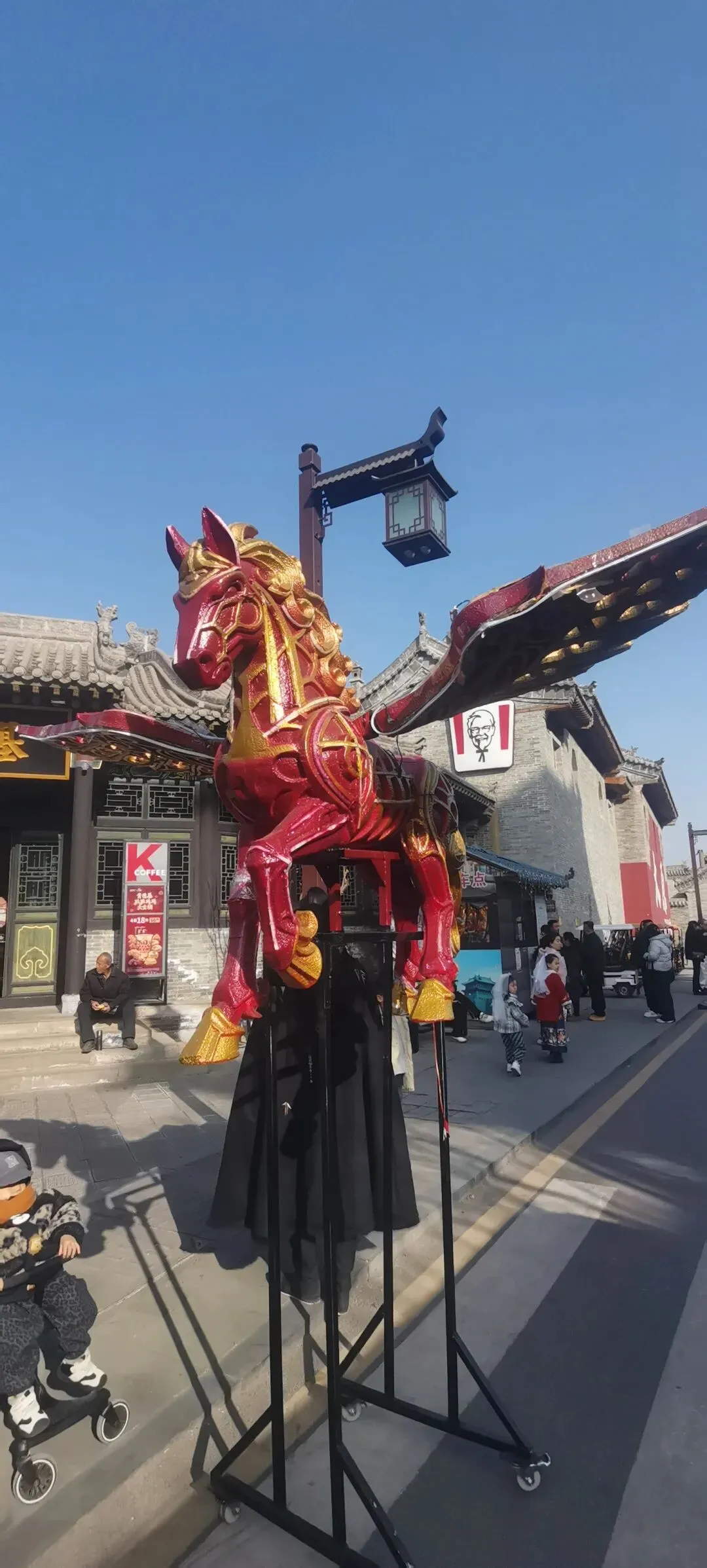 宽阔的十字大街上,人流摩肩接踵,川流不息。白发苍苍的老者,年轻的情侣,骑在父亲肩头的孩童,还有穿着汉服的姑娘,衣袂飘飘,仿佛穿越了六百年的时光,叫卖声、欢笑声、锣鼓声、交织成一曲最动听的市井交响曲。