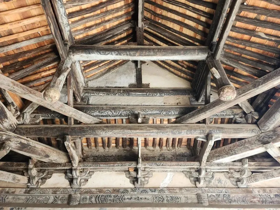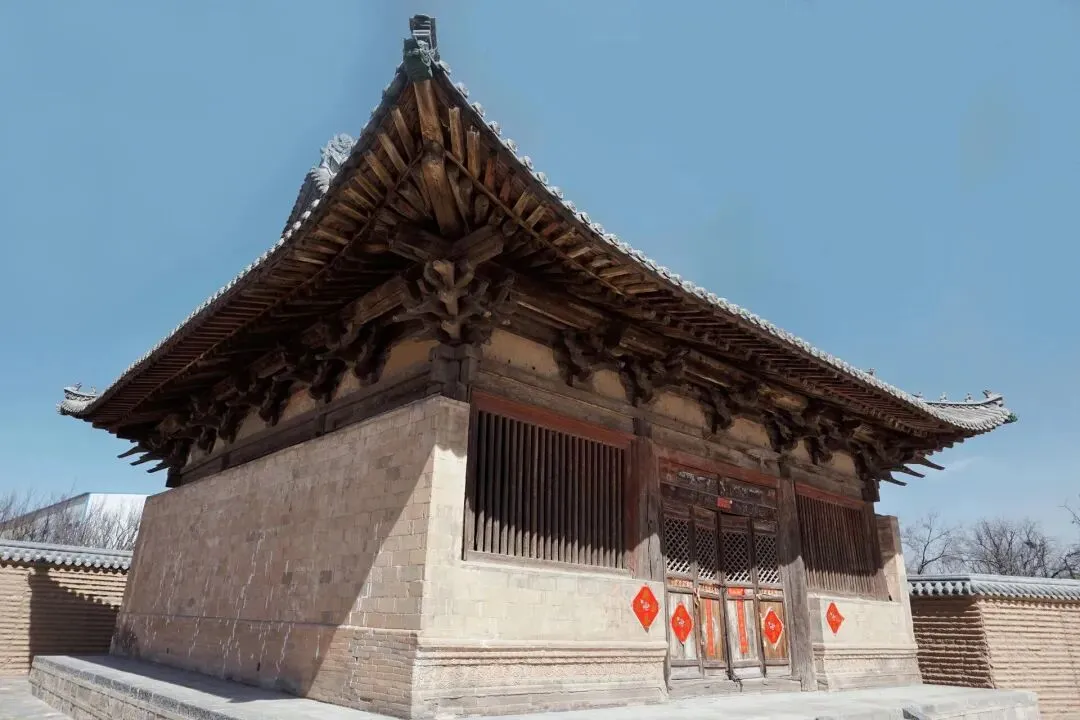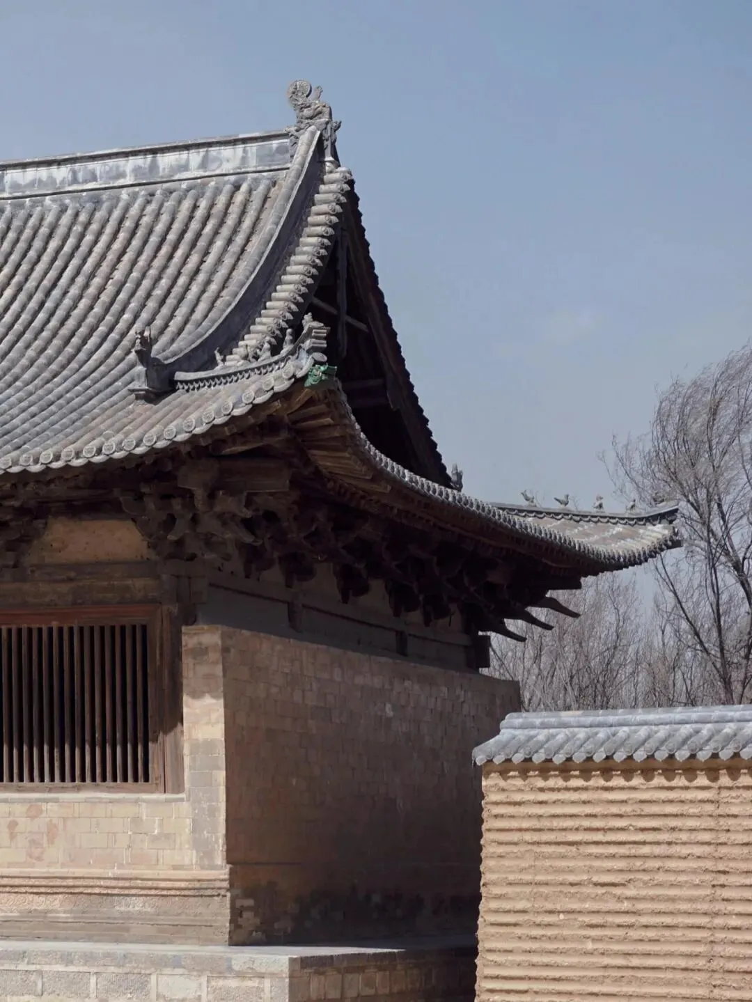 这座始建于明成化三年的大殿,坐北朝南,建筑面积二百二十五平方米,面阔三间、进深三间,平面近乎规整的正方形,单檐歇山顶覆着素瓦,没有繁复的雕饰,远远看去就是一派庄重古朴的模样,可只要走近殿内,你就会被它的结构彻底惊住。它最绝的地方,就是无梁减柱的木作工艺,整整七十二根立柱打下基础,靠着额枋与斗拱一层一层叠架上去,硬生生搭出一套井架式的承重体系,殿内找不到一根起主要承重作用的横梁,只在四角用抹角梁和垂莲柱做加固,既挣脱了传统直角结构的死板,又把内部空间撑得格外开阔,业内一直叫它“山西无梁建筑的活化石”,那种“悬梁呆柱法”,在北方的庙宇建筑里真的不多见,直到现在,不少建筑专家站在殿里,还在琢磨当年的工匠是怎么把力学和美感捏合得这么恰到好处,没有现代的计算工具,全凭经验和手艺,就能让一座木构大殿稳稳立了五百多年,想想都觉得不可思议。
