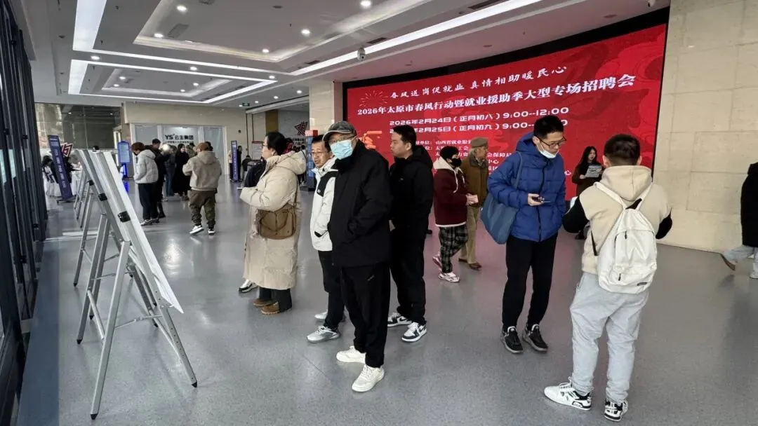 正月初八首场招聘会一经举办,便受到中央及省、市主流媒体聚焦报道,社会反响热烈。正月初九接续开展的专场招聘,现场依旧人气高涨、洽谈踊跃,求职招聘氛围浓厚。两场活动由太原市人力资源和社会保障局、太原市总工会联合主办,太原市公共就业服务中心、山西转型综合改革示范区人才引进交流服务中心等单位共同承办,精准聚焦高校毕业生、农民工、就业困难人员、零就业家庭等重点就业群体,集中送岗位、送政策、送服务、送关怀,搭建起高效便捷的供需对接平台。