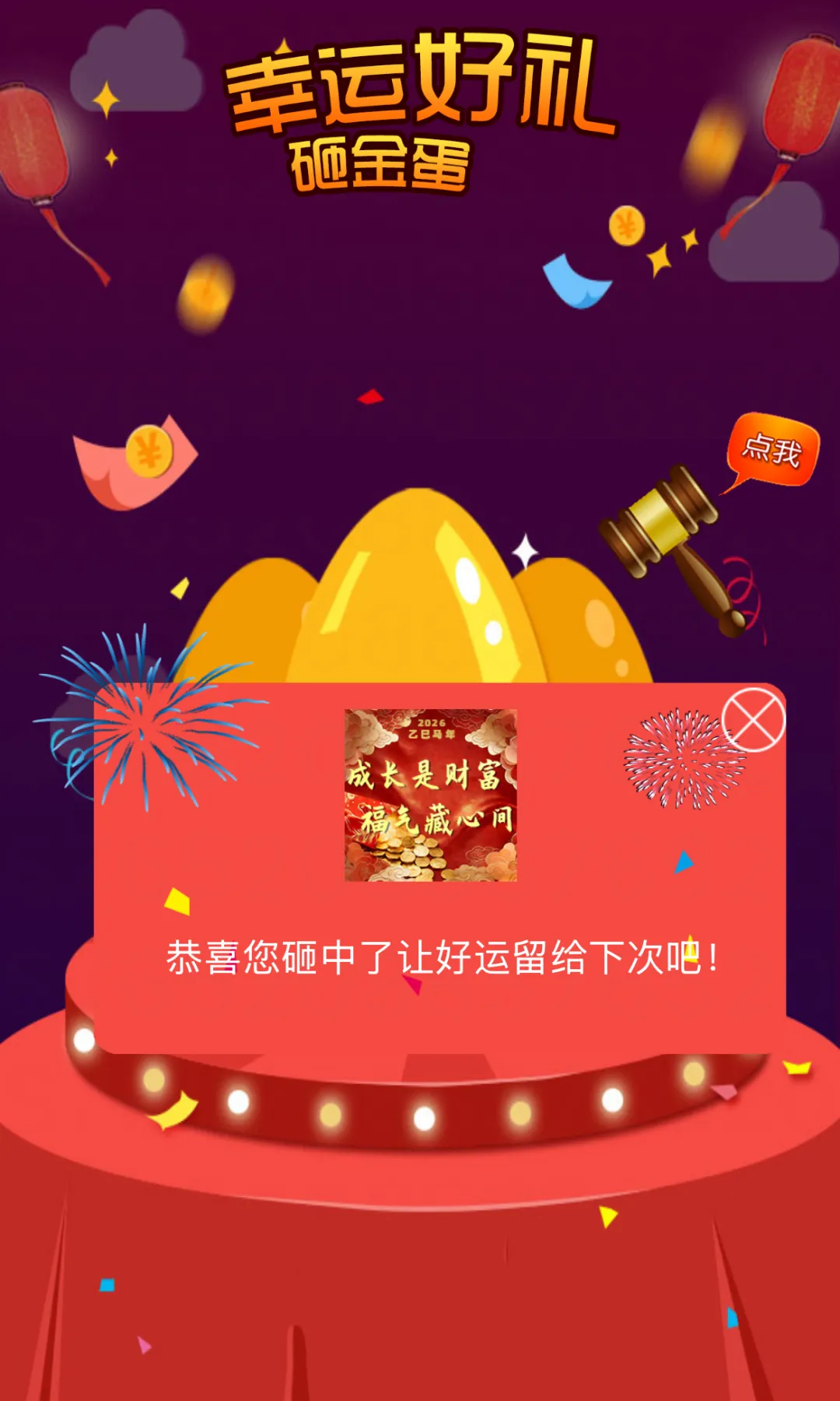 好运不止线下,线上同样精彩。活动特别开通全天线上互动通道。同步开启砸金蛋抽好礼活动,指尖轻触即可赢取幸运开工红包,共同开启新一年的好运势。