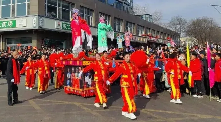 演员们凌空起舞、扮相惊艳,现场锣鼓喧天、气势恢宏,尽显 “空中芭蕾” 独特魅力,为广大乡亲与四方游客献上一场年味浓郁、气势磅礴的民俗盛宴。