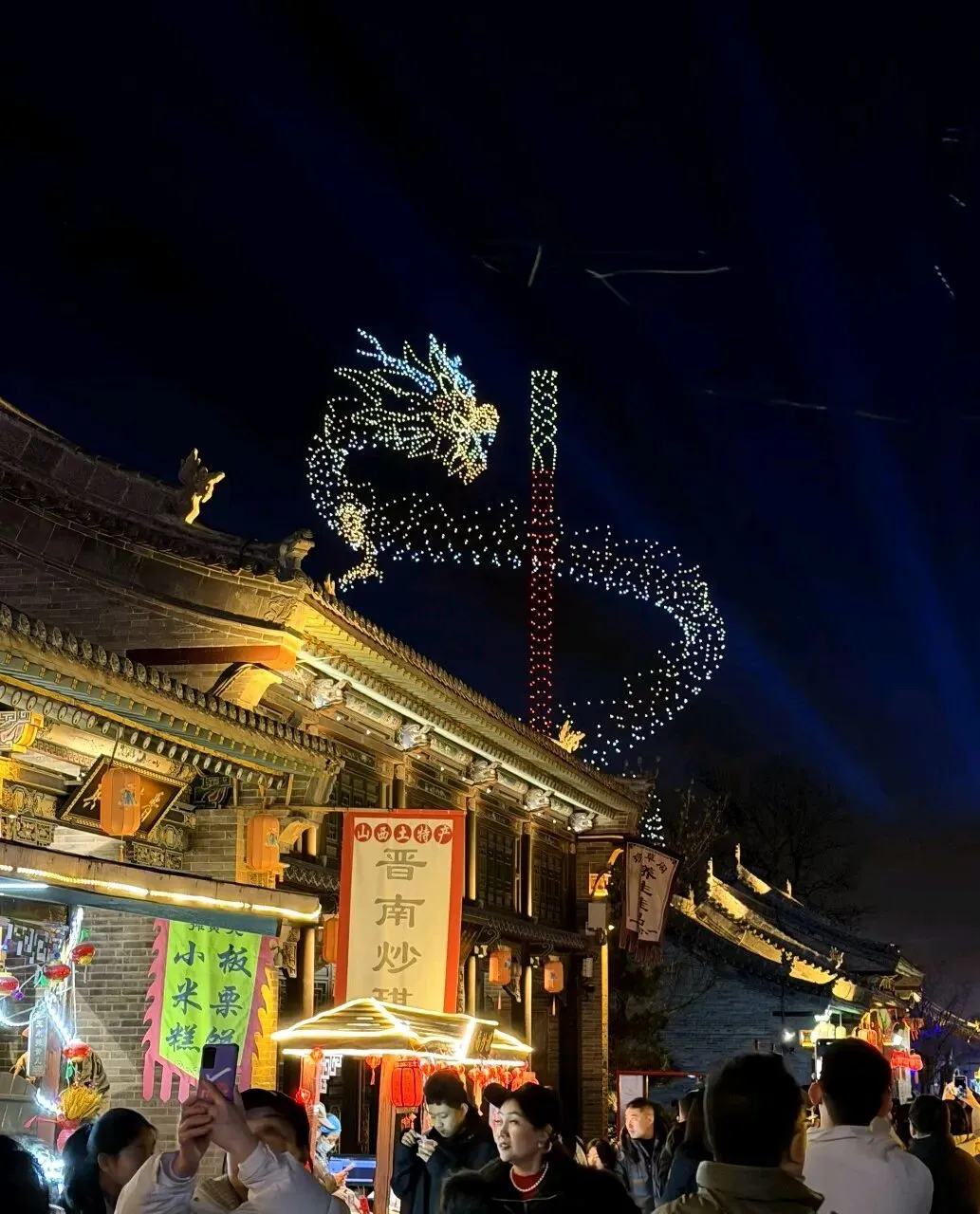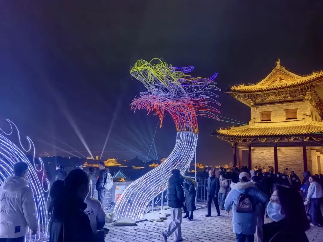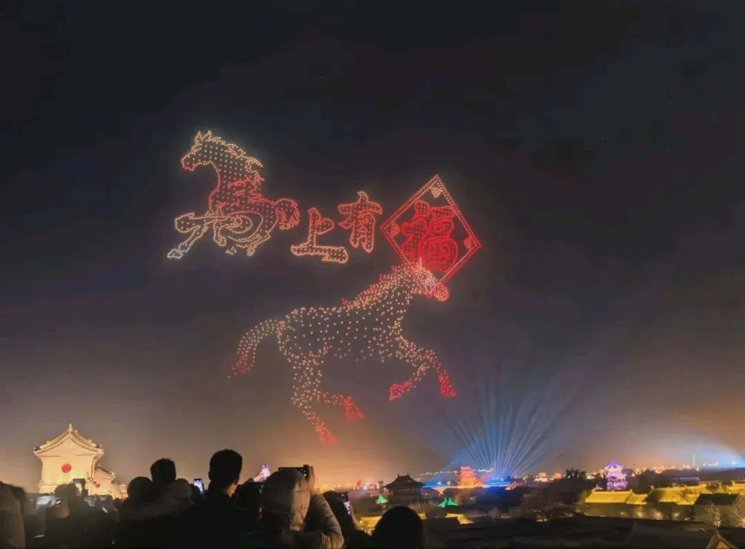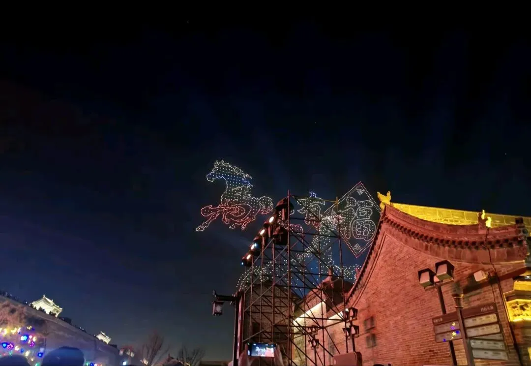 古县城墙,璀璨夺目的灯光,科技赋能的空中画卷,人声鼎沸里的人间烟火,和中国最盛大隆重的春节,这一切在流光溢彩中尽显示中国文化自信,不仅是视觉的盛宴,更是一场穿越时空的文化邂逅——传统年味不曾褪色,现代活力蓬勃生长,千年晋阳在灯火与星光中,绽放出崭新的光彩。