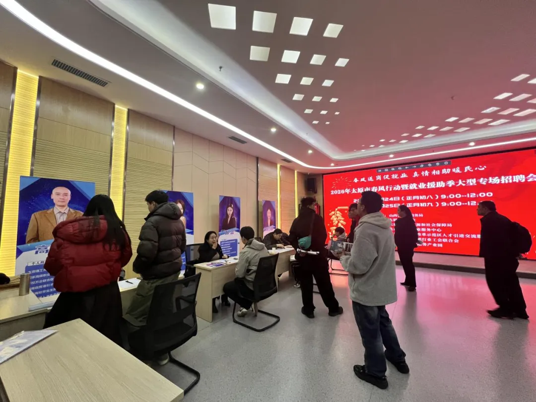 2月24日至25日(农历正月初八至初九),太原市总工会联合市人力资源和社会保障局在太原人力资源服务产业园连续举办了两场2026年春风行动暨就业援助季大型专场招聘会。