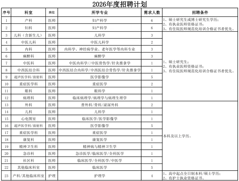 医院简介太原市太航医院成立于1986年,是一所学科特色突出、地域知名度高的集医疗、教学、科研、预防于一体的三级妇产专科医院,隶属于中国通用技术集团医疗健康有限公司。医院现有一院两区,太航院区位于太原市小店区,北院区位于杏花岭区。是山西医科大学教学基地,长治医学院教学医院,是国家级亚专科建设单位(妊娠期高血压疾病亚专科、妊娠期代谢性疾病亚专科、胎盘疾病亚专科、产科重症亚专科),国家级多学科协作诊疗建设单位(危重孕产妇住院MDT、母胎医学门诊MDT)。是爱婴医院,小店区危重孕产妇救治中心、小店区新生儿救治中心,山西省首批开展孕产妇风险评估及筛查的医疗单位,通用医疗妇产科专业委员会主任委员单位,通用健康山西区域一体化产科联盟牵头单位。山西省儿童妇幼医疗保健专科联盟,太原市儿童妇幼医疗保健专科联盟副理事长单位,国家首批分娩镇痛试点医院,无痛分娩中国行合作成员单位,现代产房Ⅱ级及无痛分娩培训中心,国家 PCCM 科规范化建设二级医院优秀单位,国家心血管病中心高血压专病医联体,山西第一附属医院呼吸科专科联盟,太原市呼吸内科专科联盟副理事长单位,太原市心内科专科联盟副理事长单位,太原市内分泌专科联盟成员单位,中国急性心肌梗死救治项目山西省救治协作分中心,华中科技大学同济医学院生殖健康研究所战略合作单位。医院现开放床位数435张,配有飞利浦1.5T核磁共振、东软64排128层CT、东软32排64层CT,彩色多普勒超声诊断仪等高端医疗设备。组织体系完善,医疗功能齐全。医院坚持专科特色道路,产科年分娩量连续多年位居山西省前列,以“创建三级甲等妇产专科医院”为中心目标,坚持差异化分层次加强学科建设的原则,太原市医学重点学科1个(产科),太原市医学重点(建设)学科1个(儿科),太原市市级临床重点专科5个(产科、儿科、呼吸内科、检验科、超声科)。 太航医院秉承“通用健康 仁爱为本·央企品质”的理念,以“仁爱、崇德、精术、奉献”的院训和“关爱生命、呵护健康、精术济世、惠泽百姓”的使命感,积极承担区域内社会责任,参与各类医疗合作项目,致力于提供高质量的医疗服务,为提升区域医疗水平贡献一份力量。招聘条件一、基本条件1.具有中华人民共和国国籍,遵守中华人民共和国宪法、法律和法规,具有良好的品行和职业道德;2.具有履行岗位职责的身体条件;3.服从医院组织安排,热爱医疗事业;4.具有招聘岗位所需国家承认的相应学历、医师、技师、护士资格证书。二、政治条件 政治素质好,自觉坚持以马克思列宁主义、毛泽东思想、邓小平理论、“三个代表”重要思想、科学发展观、习近平新时代中国特色社会主义思想为指导,增强“四个意识”,坚定“四个自信”,做到“两个维护”,在思想上政治上行动上同以习近平同志为核心的党中央保持高度一致,保证党的基本理论、基本路线、基本方略全面贯彻执行,立志投身企业的改革发展党建各项事业。招聘计划