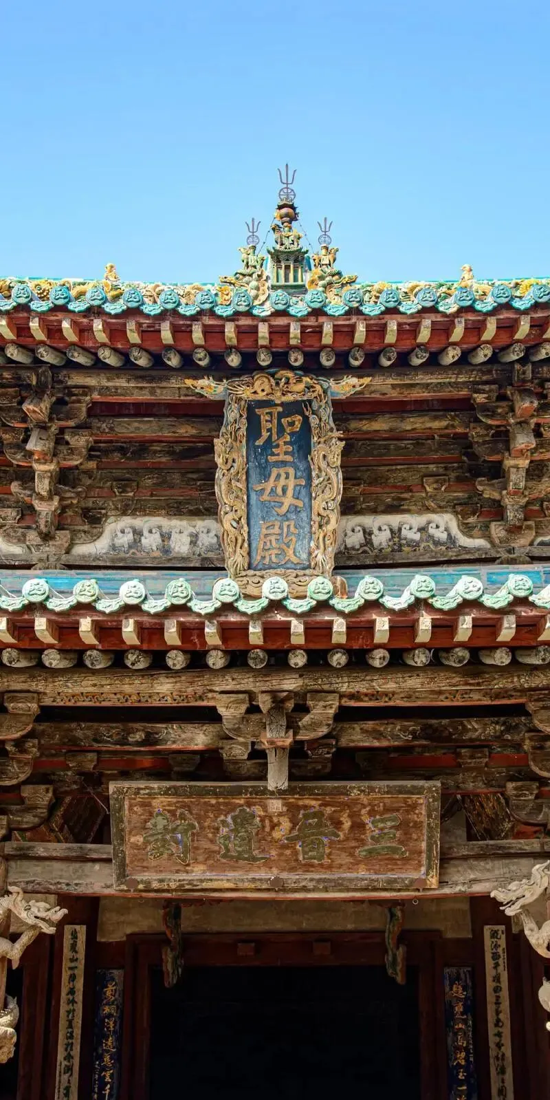 圣母殿是宋代的,木头一层一层压住,站在檐下能闻到木香。