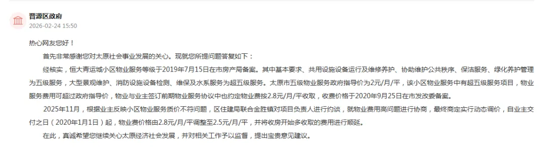 太原市晋源区政府回应:
