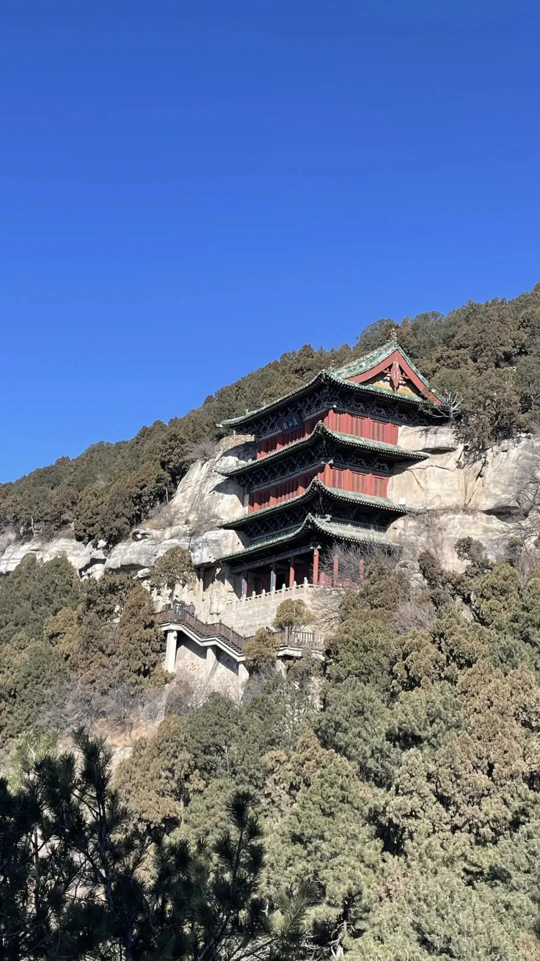 年代久远,木构崖阁和栈道几乎已消失殆尽,只剩下石制的廊柱留下隐约的痕迹。