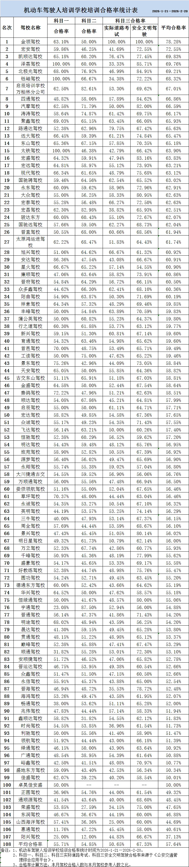 机动车驾驶人培训学校培训合格率