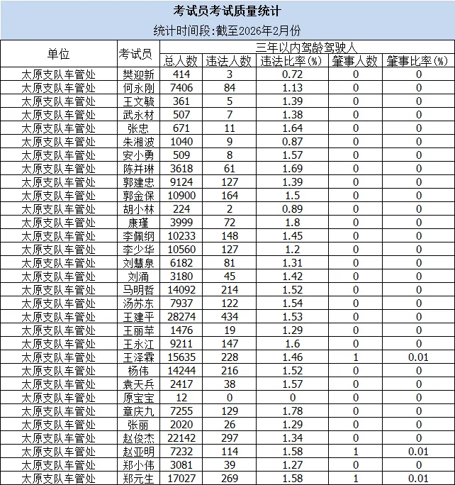 >太原交警向社会公布辖区机动车驾驶人培训学校培训合格率、考试员考试质量、违法事故率等情况