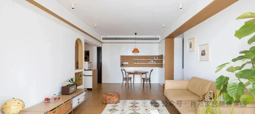 设计师以日式美学为基调,用原木、棉麻、藤编等天然材质,打造出这个质朴温馨的居所。