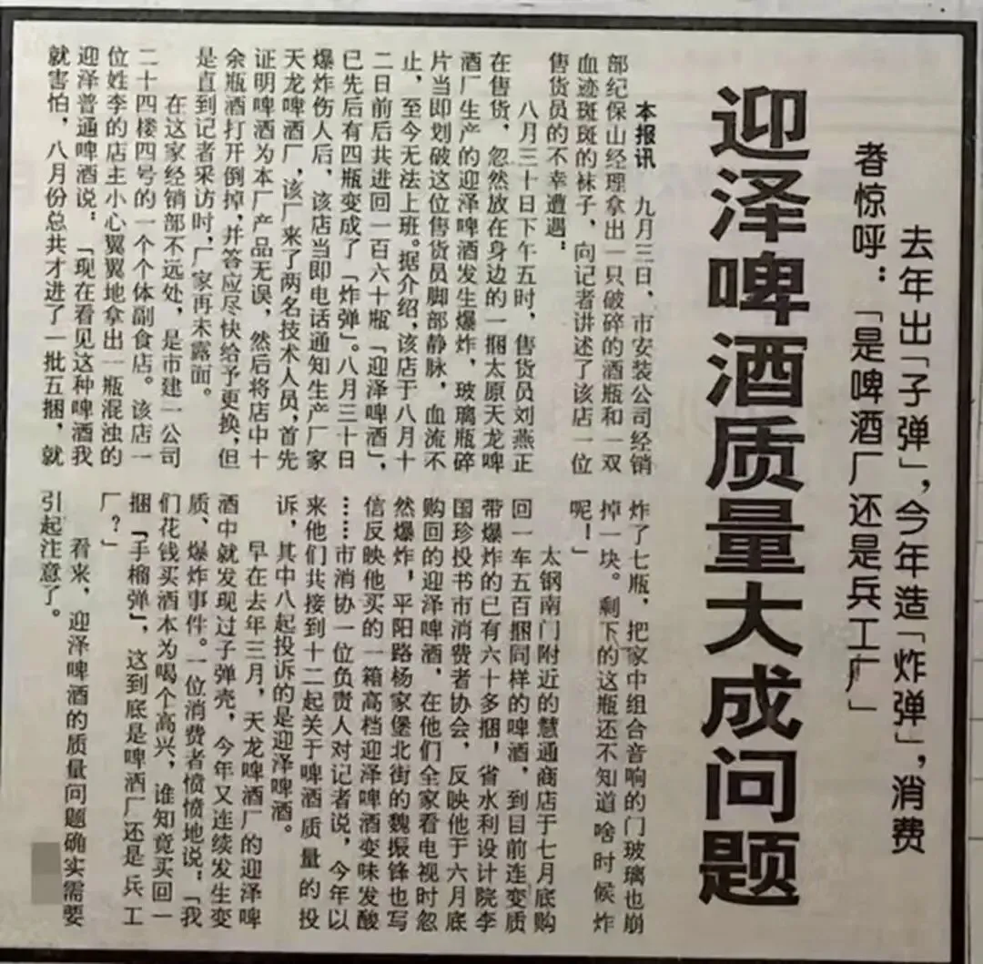 更不巧的是,当时买到那瓶有弹壳啤酒的消费者还是一名警察,为此他找啤酒厂理论了4个月,可当时天龙啤酒厂借着自己的势力根本不将那放在心上。