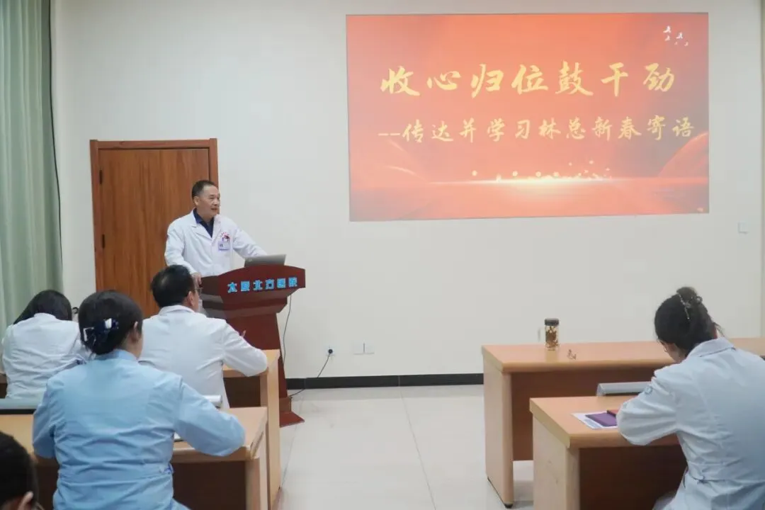 一是感谢。 他代表院领导向过去一年辛勤付出的全体员工表示衷心感谢,特别向春节期间坚守岗位的医护人员致以诚挚敬意。