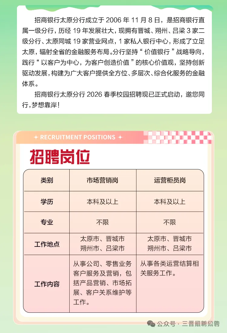>招商银行太原分行2026年春季校招启动