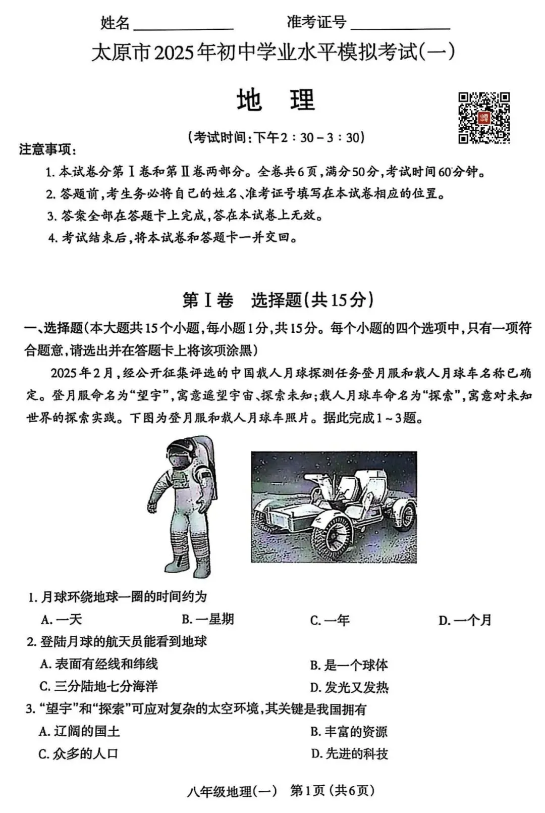 【太原二模】太原市2025年初中学业水平模拟考试(二)
