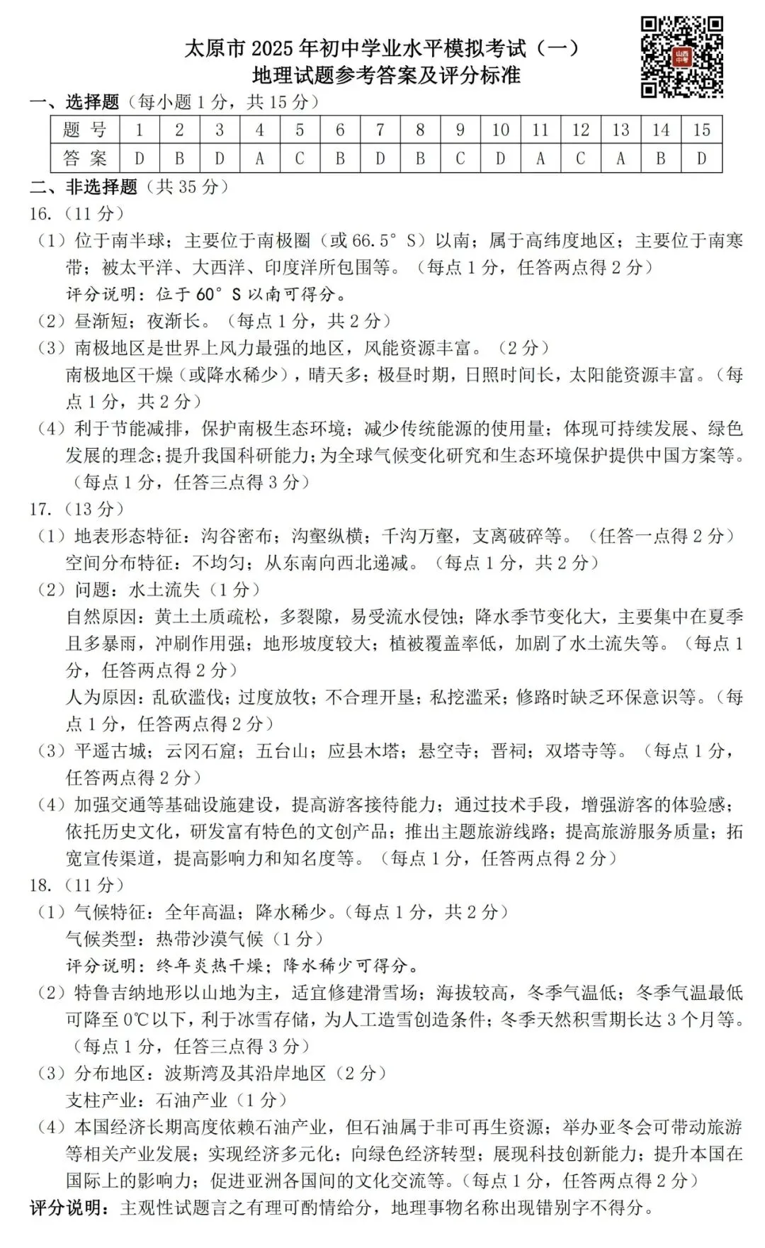 >【地理】太原市2025年初中学业水平模拟考试(一)