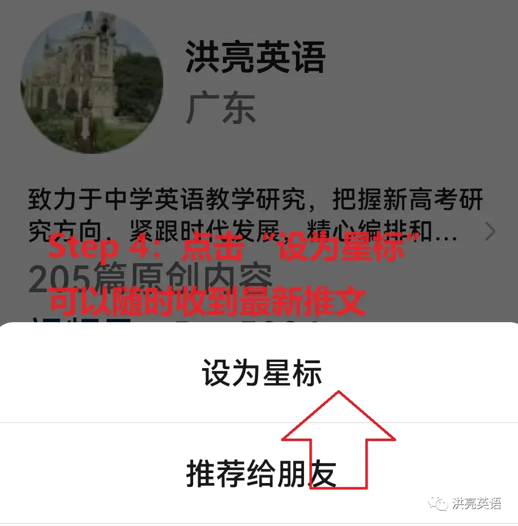 欢迎点击关注左上《洪亮英语》公众号!设星级方法如下: