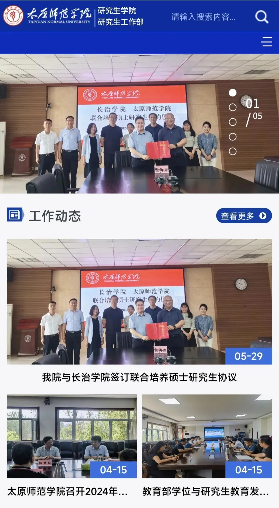 太原师范学院关于招收研究生的所有通知都会放在这个网站上,像招生简章、报名、录取情况、调剂信息等都会在这个网站上通知。