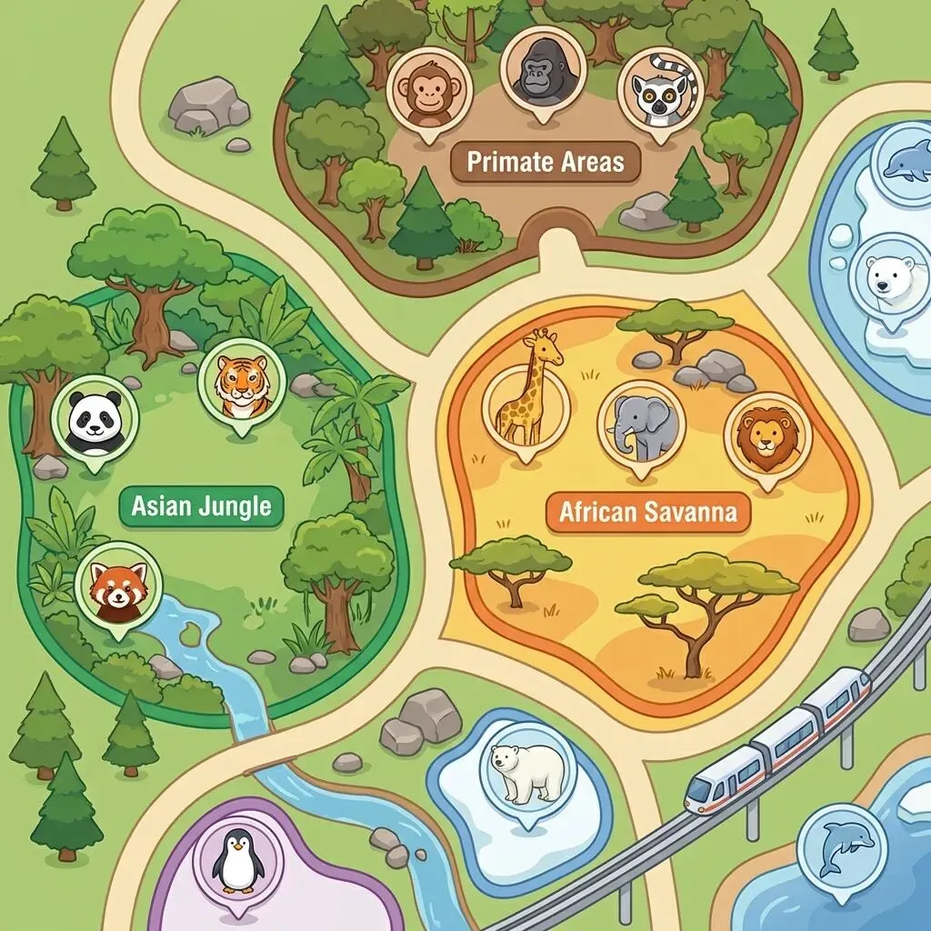 南门入园 ➡️ 鸟类区(火烈鸟必看) ➡️ 灵长类区(猴山很有趣) ➡️ 熊猫馆 ➡️ 大象馆 ➡️ 河马馆 ➡️ 非洲食草区 ➡️ 澳洲区 ➡️ 猛兽区 ➡️ 北门出或折返。