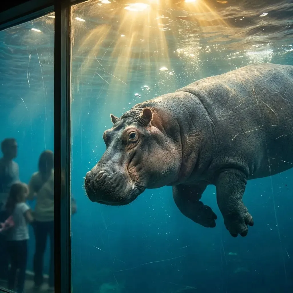 它采用了巨型玻璃幕墙设计,你可以清晰地看到这群庞然大物在水中轻盈游动的样子。这种“水下视角”非常震撼,尤其是当河马张开大嘴或者贴着玻璃游过时,那是相当的压迫感与萌感并存!
