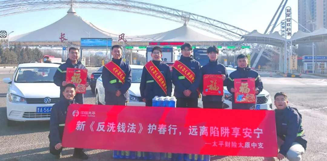 2月14日,太平财险太原中支志愿者们来到太原市长风东高速口,开展一年一度的“春运护航”公益行动,以“新反洗钱法护春行,远离陷阱享安宁”为主题,将金融安全知识送到群众身边。这是太原中支坚守的暖心传统,已连续第四年为返乡车主提供便民服务。