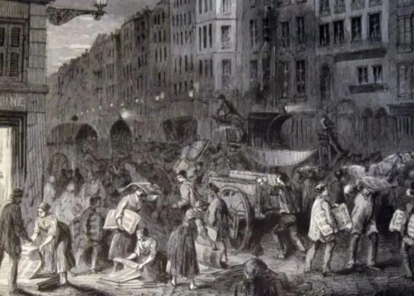 上图为1848年法国巴黎,人们正打包报纸,以方便投递