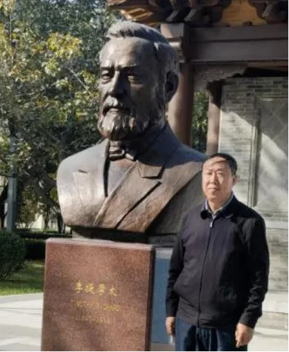 上图为笔者在山西大学校史馆李提摩太雕像前