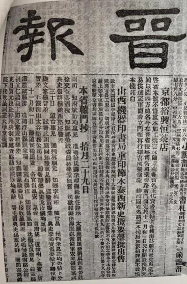 笔者注:本文参考资料有:1989年姚建红著《中国新闻史溯源》;1999年,山西省史志研究院编《山西通志·新闻出版志·报业篇》;2000年《太原新闻史》;2003年王海勇著,太原市迎泽区文化体育局、太原迎泽收藏协会《晋报百年概览》;2007年《山西日报史》;2009年11月,张政、安捷主编,三晋出版社《太原图志》;2010年《山西期刊史》;2011年贾立进主编《民国太原》;2011年11月,赵国柱主编,山西人民出版社《太原日报社社史》;2014年7月,曹安吉收集,高恒如编撰,三晋出版社《三晋民国老照片》;2021年12月,王福庆主编,三晋出版社《太原日报社志》;2022年4月17日“忘忧草”《报纸最早是谁发明的》;2024年9月,山西农民报编辑部编撰,山西经济出版社《山农史话》;2025年山西省政协《文史月刊》第一期王泽周《山西最早的报纸——<晋报>》;2025年4月13日唐小明《<山西日报>诞生记》等。
