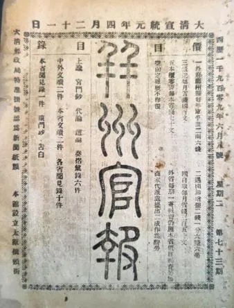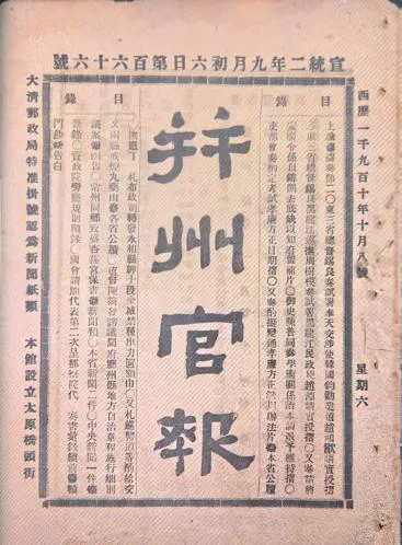 1908年5月15日创刊,为山西巡抚衙门机关报,也是太原最早的官方报纸,负责人为省咨议局议员李庆芳。