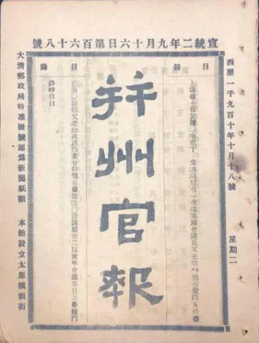 此外,清末时期,太原出版的报纸还有《晋阳白话报》《晋阳学报》《第一晋话报》《汉帜》《晋乘》《山西教育官报》《山西白话演说报》等。