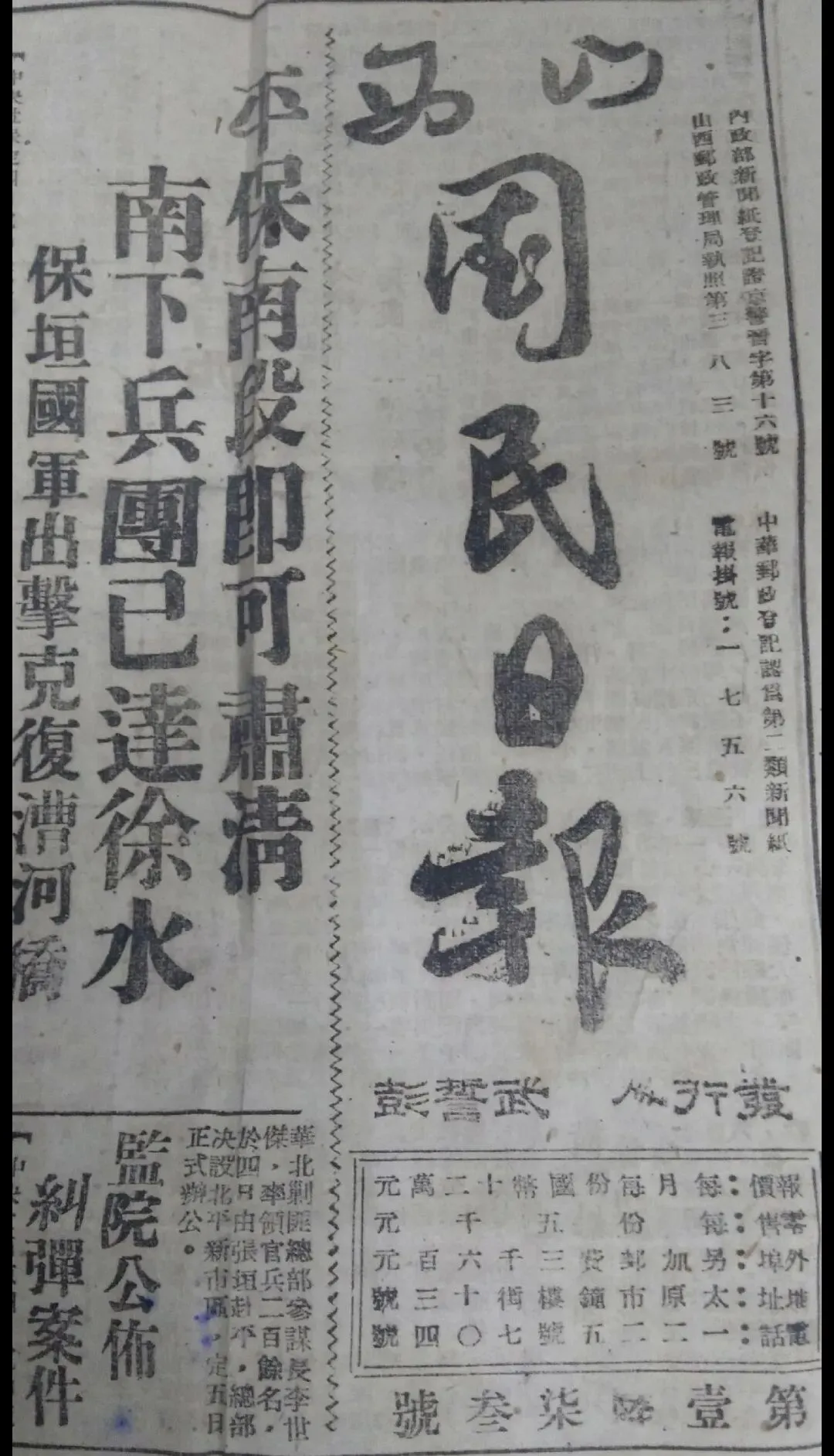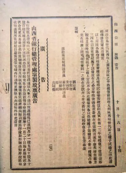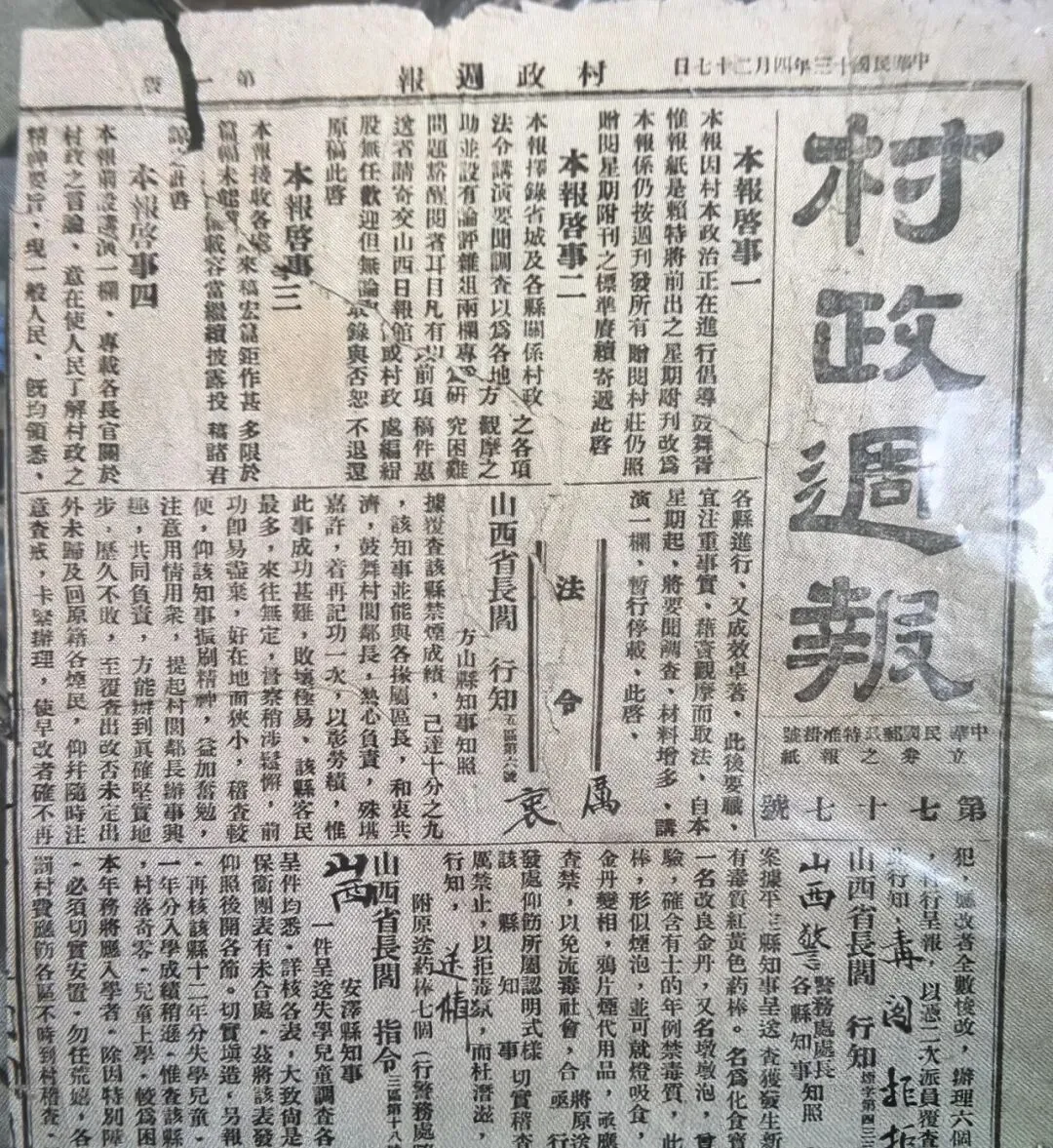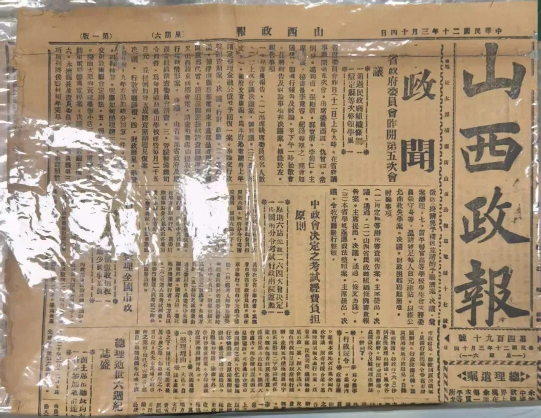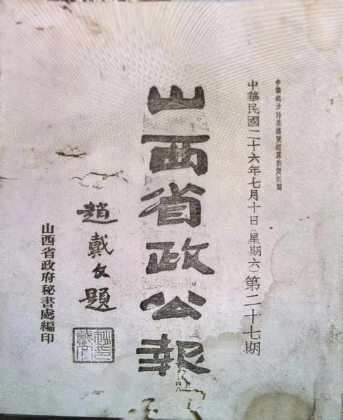 上图为1931年3月14日《山西政报》,贾大锦收藏