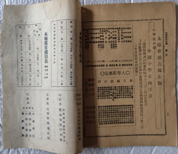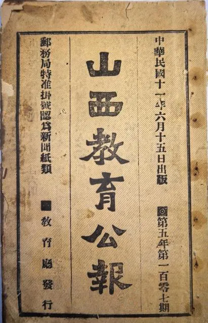 上两图为1922年6月15日《山西教育公报》封面及封底