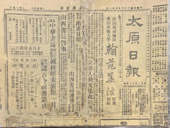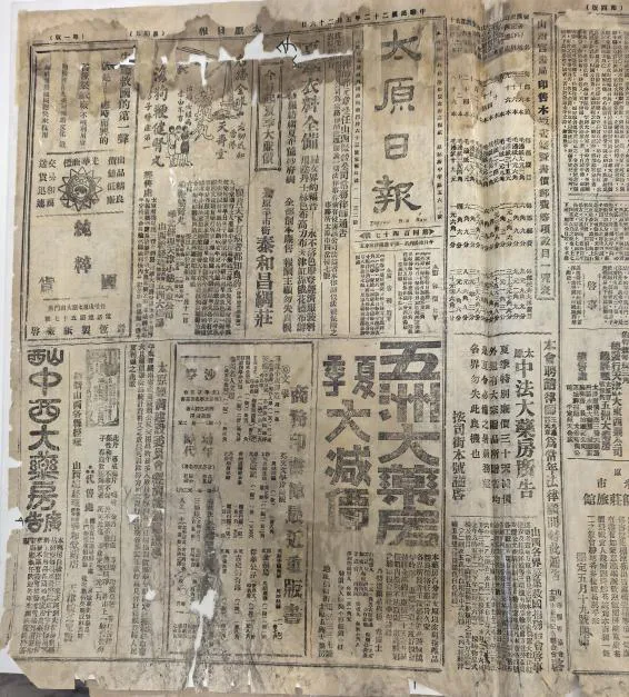 上两图为1933年5月26日和1934年9月7日《太原日报》,贾大锦收藏