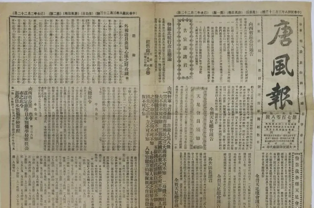 1932年2月1日发刊,由《山西正报》改名,原名《山西政报》于1928年出版。月出一册,专载法令,无新闻性质。