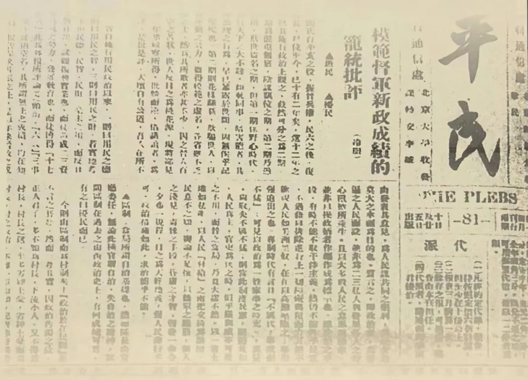 1919年,高君宇在太原积极推动学生运动,同年8月支持创办《平民周刊》。主编王振翼,目标是“抱定为人民奋斗之宗旨,不断以山西实况报告世人,代人民呼号;且不断将世界思潮输入娘子关内,供晋民以奋斗有效之途径”。主要反映山西社会现实,揭露黑暗弊端,宣传科学民主思想。1922年5月被迫停刊。1923年11月,经高君宇、贺昌策划,在北京复刊。贺昌在第80期上发表《山西的学生运动》,分析了学生运动形势,提出学生运动方向是“往民间去”,揭露军阀罪恶和列强侵略,“使民众知道乱源之所在,奋起而争自由,以造成团结努力,推翻两重压迫。”