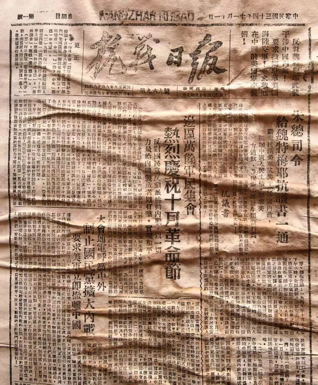 上图为1945年11月11日《抗战日报》,时悦斋博物馆收藏