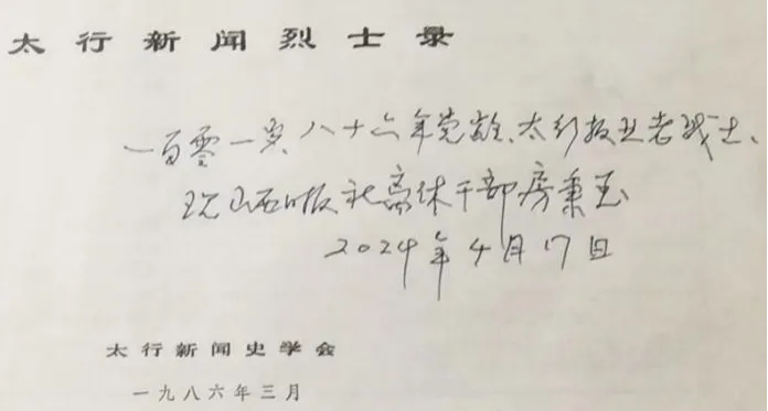 上图为2022年2月,薛喜旺编《晋阳日报史略》