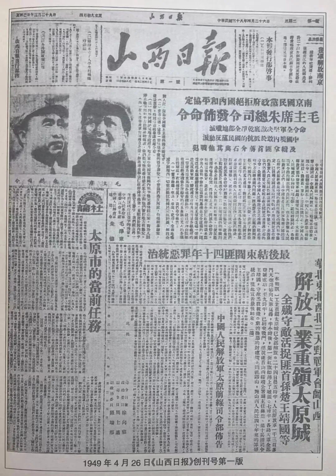 1949年4月24日太原解放,4月26日,中共太原市委创刊《山西日报》。9月1日,山西省委成立后,《山西日报》改为省委机关报。之后,在中国共产党领导下,太原各类报纸成为党和政府的喉舌,成为人民群众的精神家园。