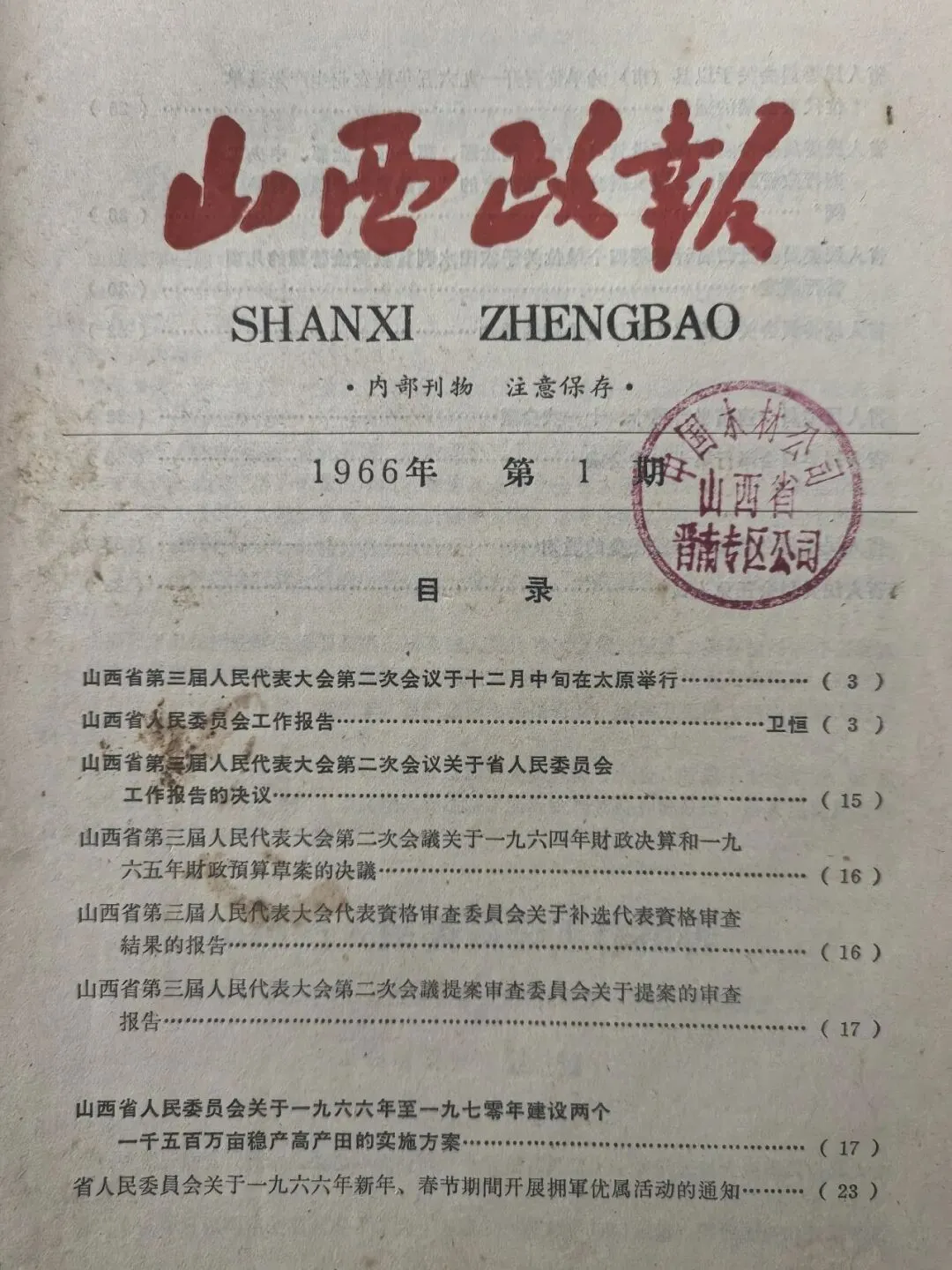 上图为1966年第一期《山西政报》,时悦斋博物馆收藏